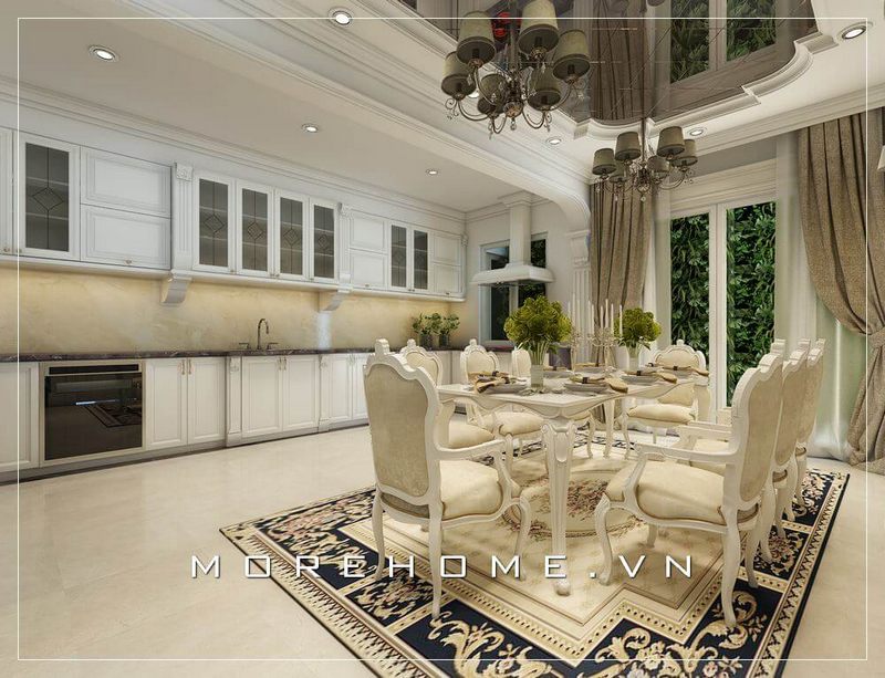 Thiết kế nội thất phòng bếp ăn biệt thự theo phong cách tân cổ điển sang trọng và đẳng cấp