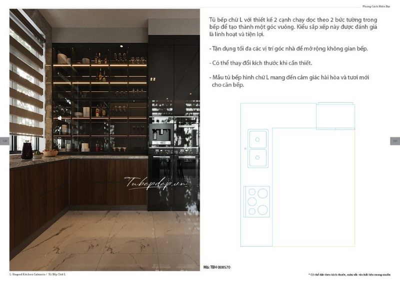 Mẫu tủ bếp đẹp với kiểu dáng chữ L đầy mới lạ, đây được coi như là cảm hứng tạo cho những người nội trợ trong gia đình bạn
