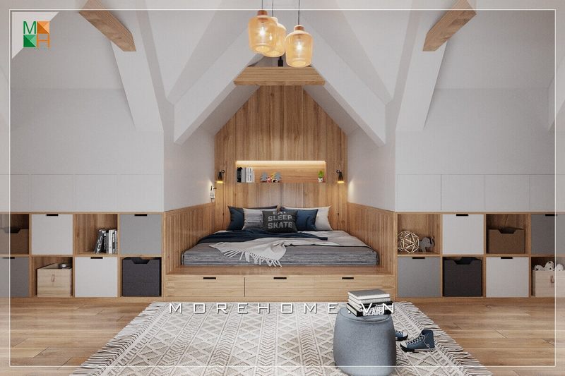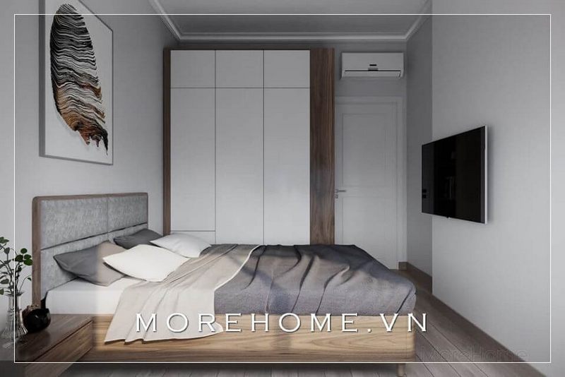 Nếu phòng ngủ của bạn không được rộng lắm, thì mẫu thiết kế phòng ngủ với đầy đủ nội thất cần thiết cho việc sinh hoạt nghỉ ngơi này của Morehome sẽ là lựa chọn tuyệt vời dành cho bạn