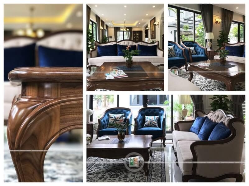 Mẫu thiết kế sofa gỗ óc chó tân cổ điển được lựa chọn nhiều nhất tại Hà Nội.