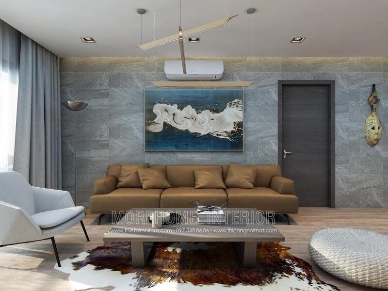 Thi công phòng khách căn hộ nội thất hiện đại tiện nghi cao cấp, thoải mái trong quá trình sử dụng hằng ngày