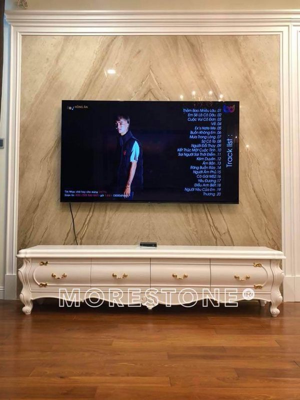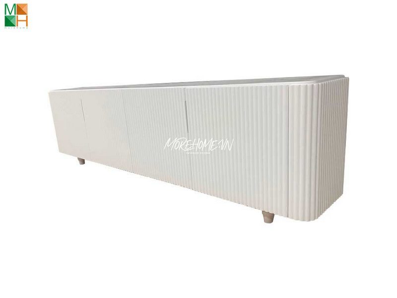 Kệ TV phong cách hiện đại, chân gỗ tự nhiên sơn trắng phù hợp với chung cư, biệt thự