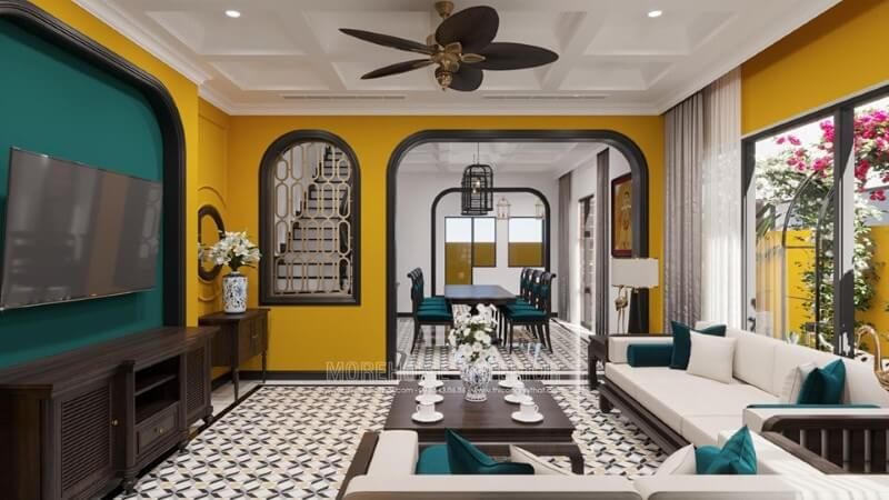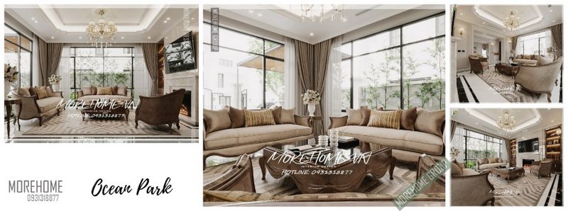 Thiết kế nội thất cho phòng khách biệt thự tân cổ điển để làm nổi bật đẳng cấp độc đáo của chủ nhân.