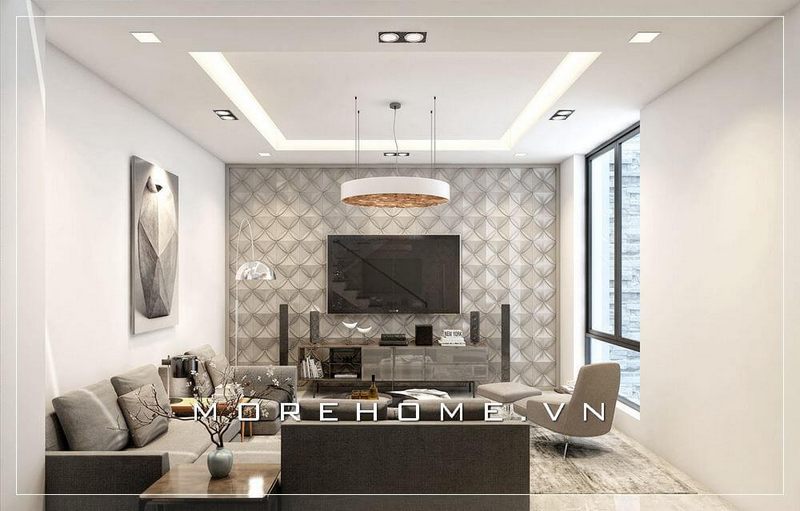 Để trang trí phòng khách chung cư theo phong cách hiện đại, sử dụng tone màu trầm để tạo ra một không gian ấm cúng và thư giãn cho tất cả thành viên trong gia đình.